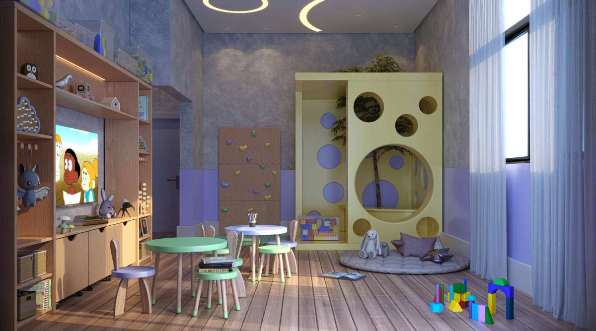 Lazer completo equipado e decorado pela construtora, com destaque para o Lounge com Piscina e ambientes planejados para toda a família.