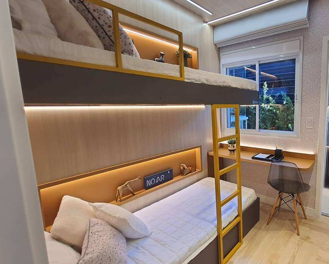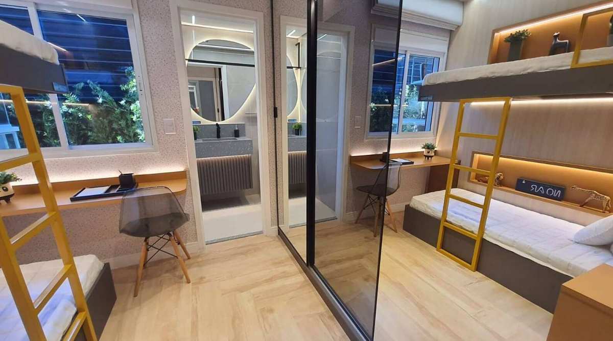 - Persianas integradas com blackout nos dormitórios