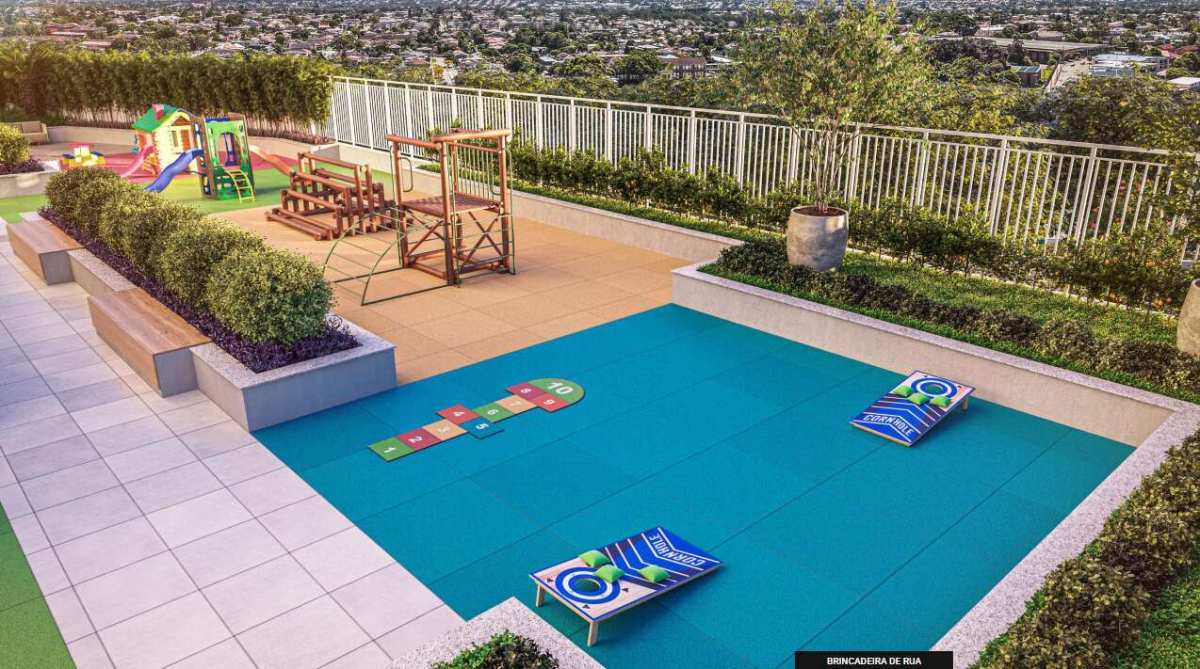 - Coworking, brinquedoteca, salão de jogos e fitness