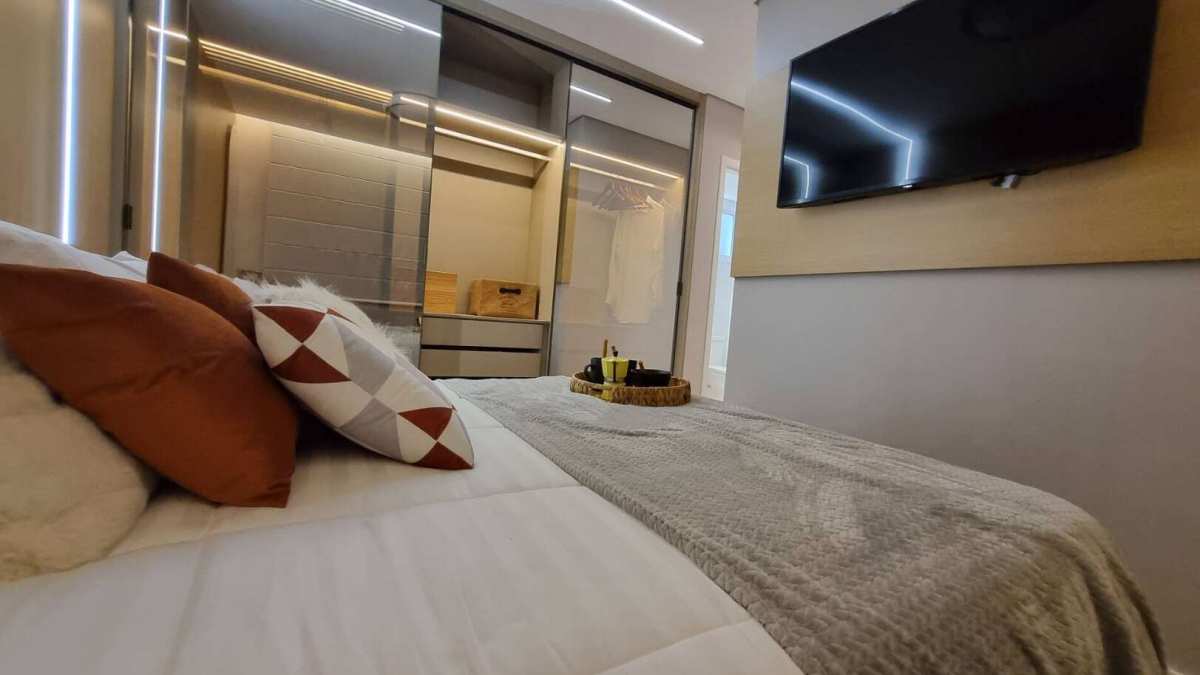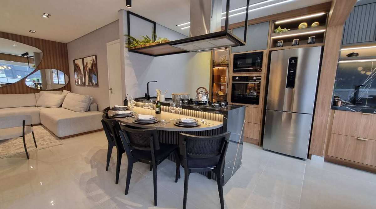 São apartamentos amplos, bem distribuídos e com infraestrutura de alto padrão. Viva o prazer de morar bem com ambientes arejados, terraço gourmet com churrasqueira a carvão e possibilidade de automação residencial.